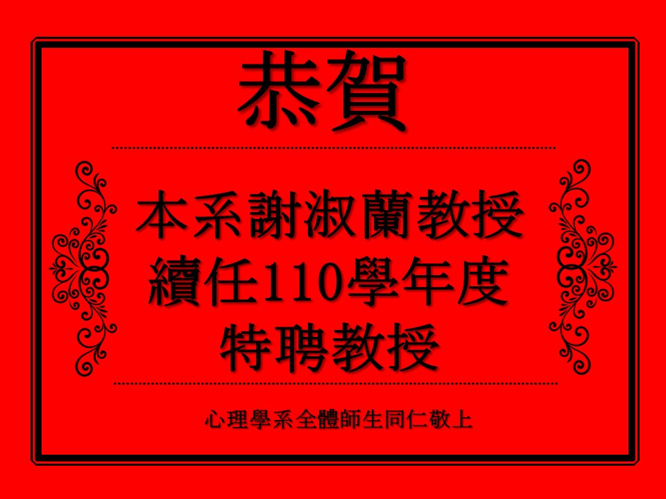 【賀】本系謝淑蘭教授續任110學年度特聘教授