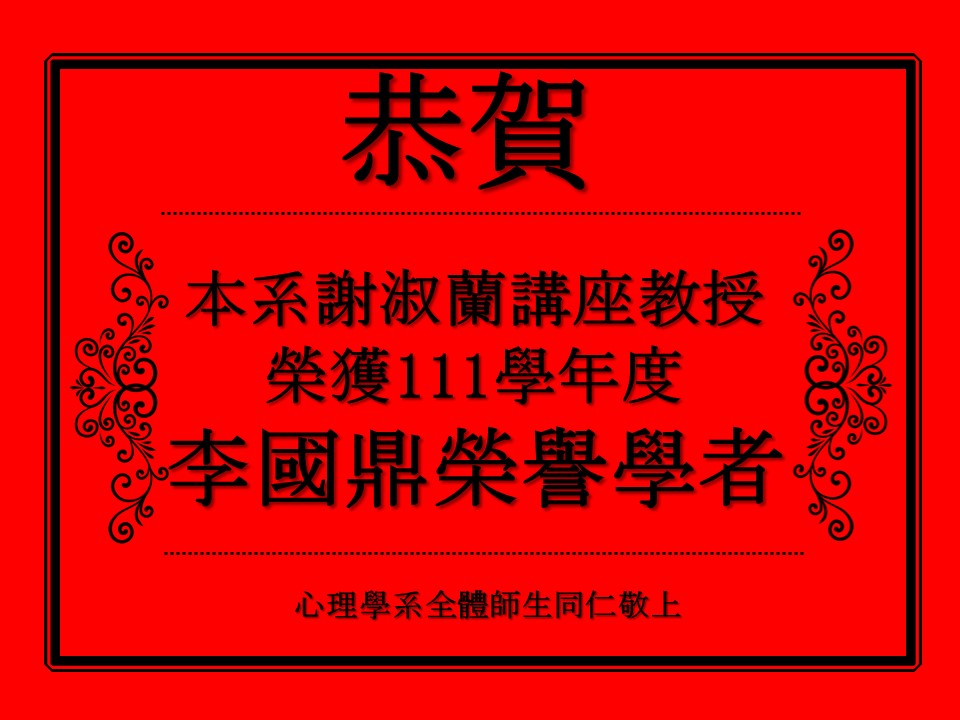 【賀】本系謝淑蘭講座教授獲選111 學年李國鼎榮譽學者