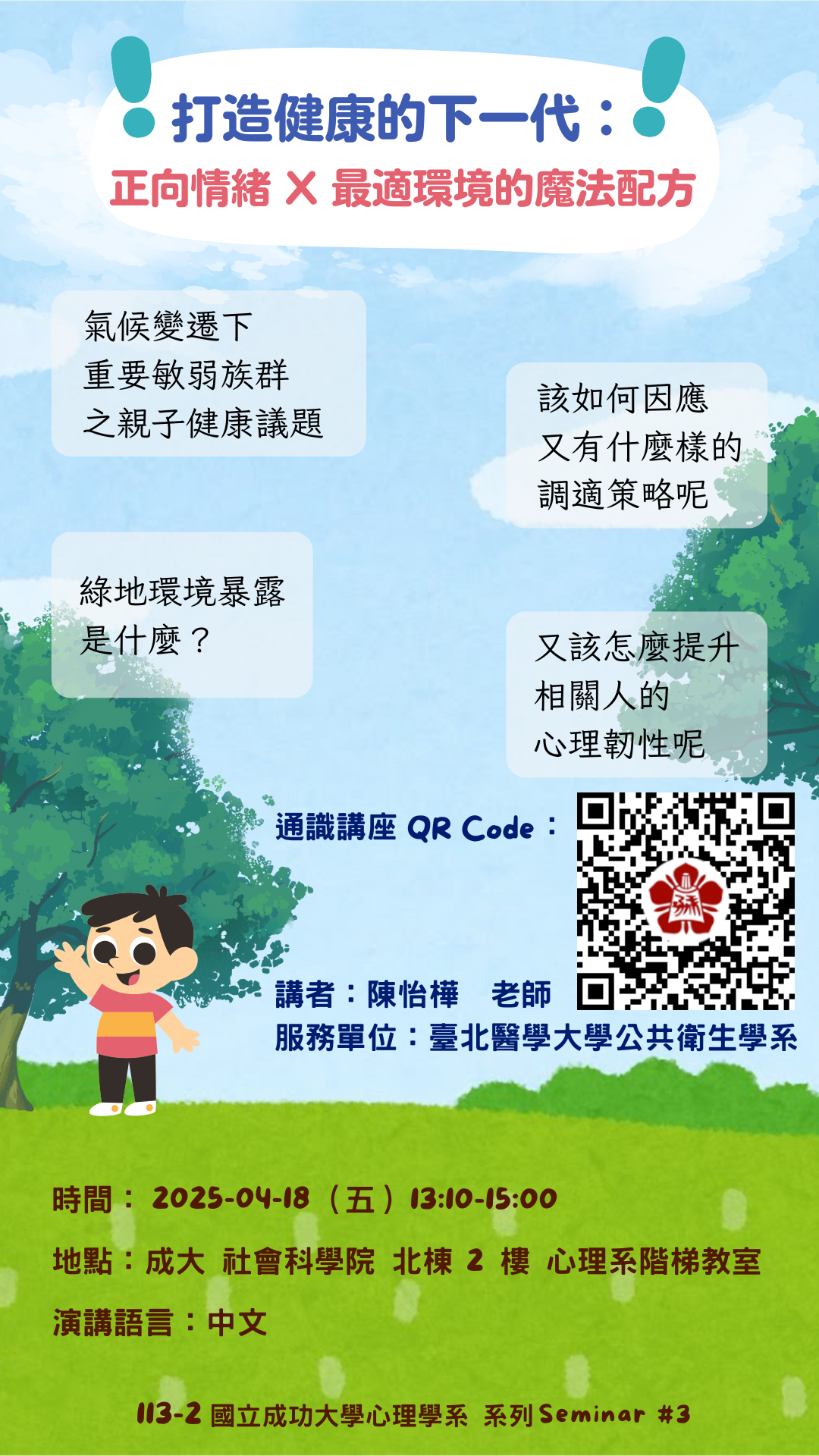 地點:成大社會科學院北棟2樓心理學系階梯教室