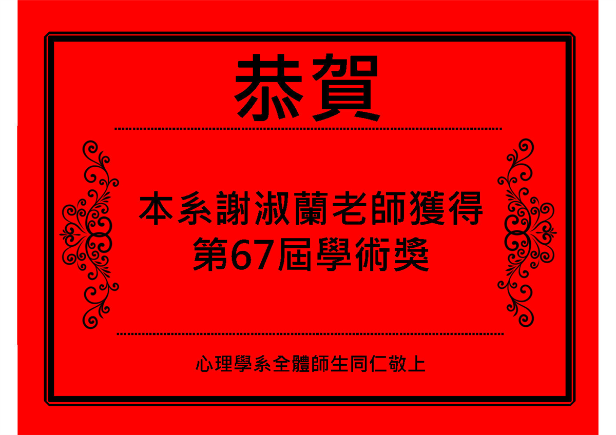 【賀】本系謝淑蘭講座教授獲得第67屆學術獎