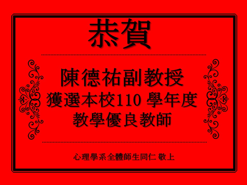 【賀】本系陳德祐副教授獲選本校110 學年度教學優良教師