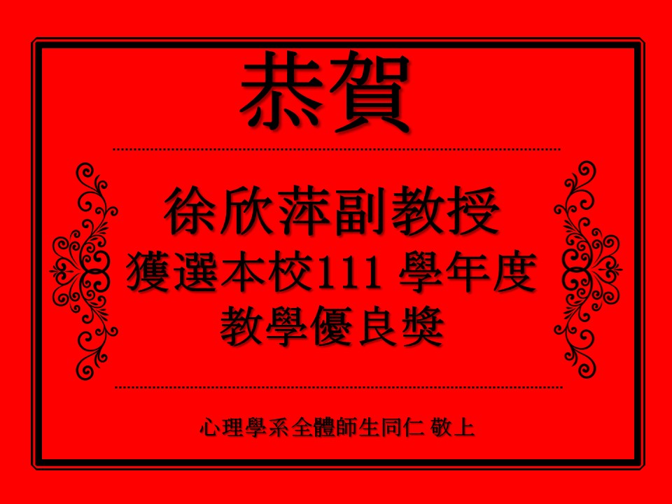 【賀】本系徐欣萍老師獲得111學年度教學優良獎