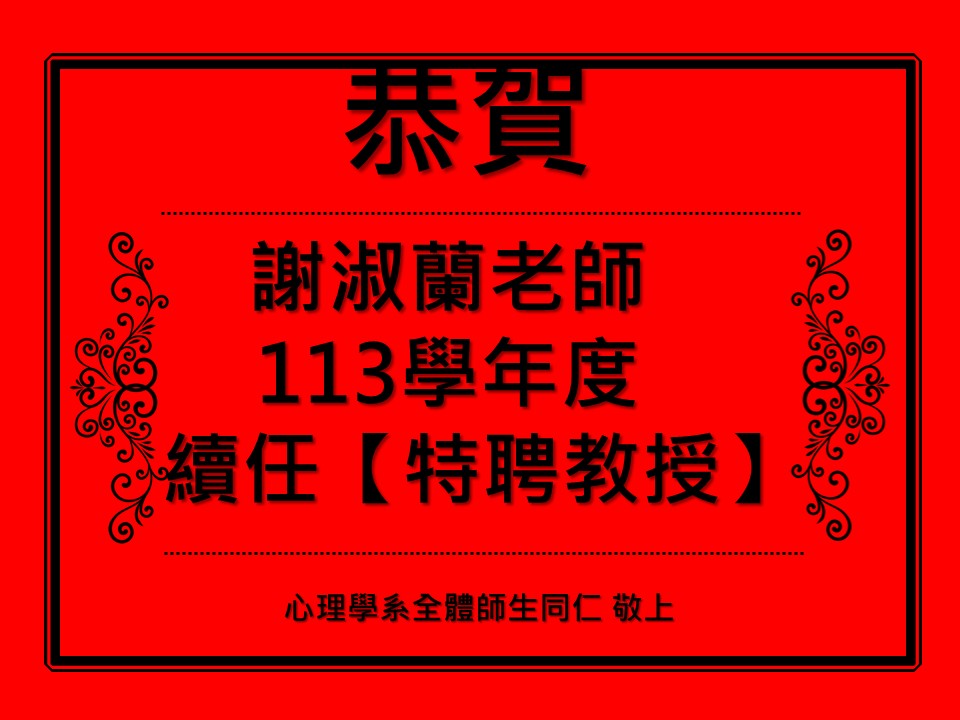 【恭賀】謝淑蘭教授113學年度續任特聘教授