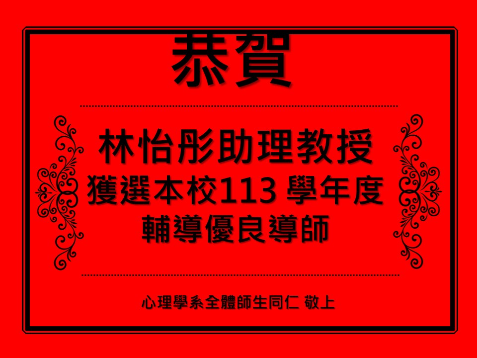 【恭賀】本系林怡彤助理教授獲選本校113 學年度輔導優良導師