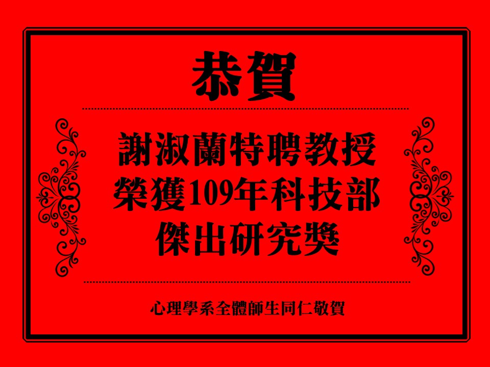 【賀】本系謝淑蘭教授獲109年度科技部傑出研究