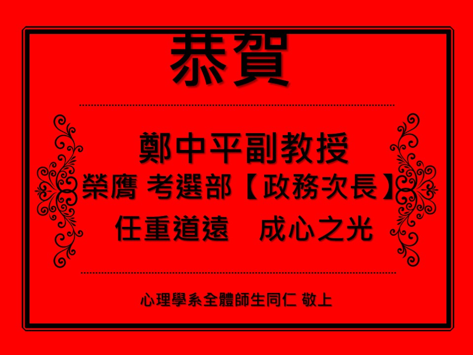 【恭賀】本系鄭中平副教授榮膺考選部政務次長