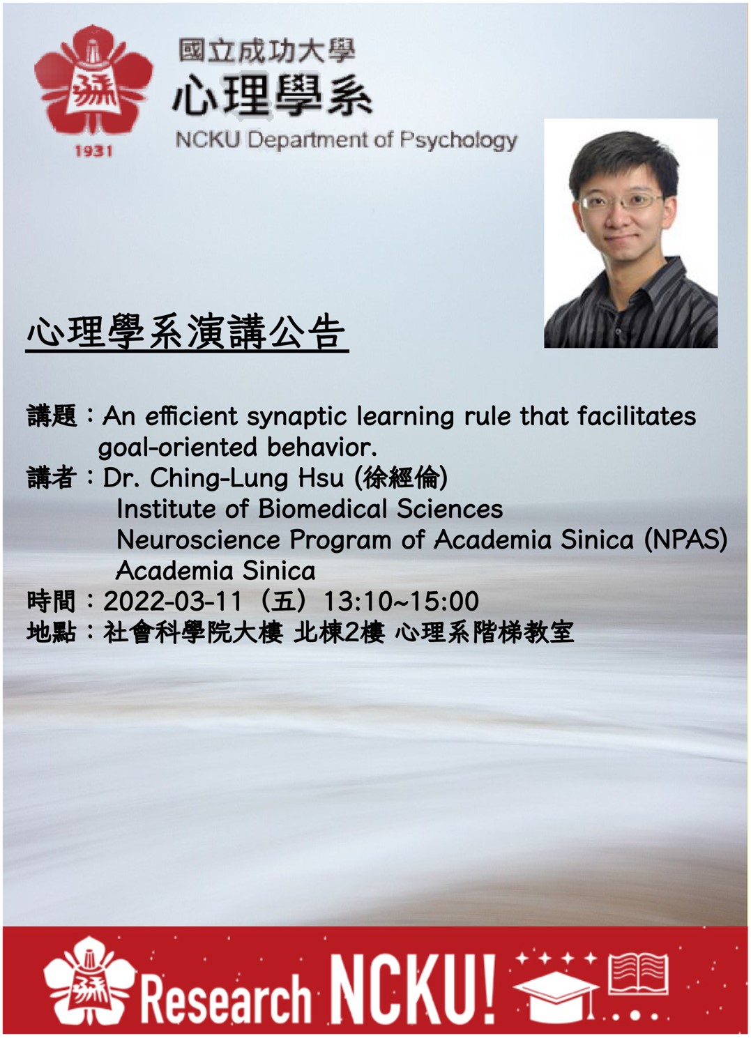 講題:An efficient synaptic learning rule that facilitates goal-oriented behavior