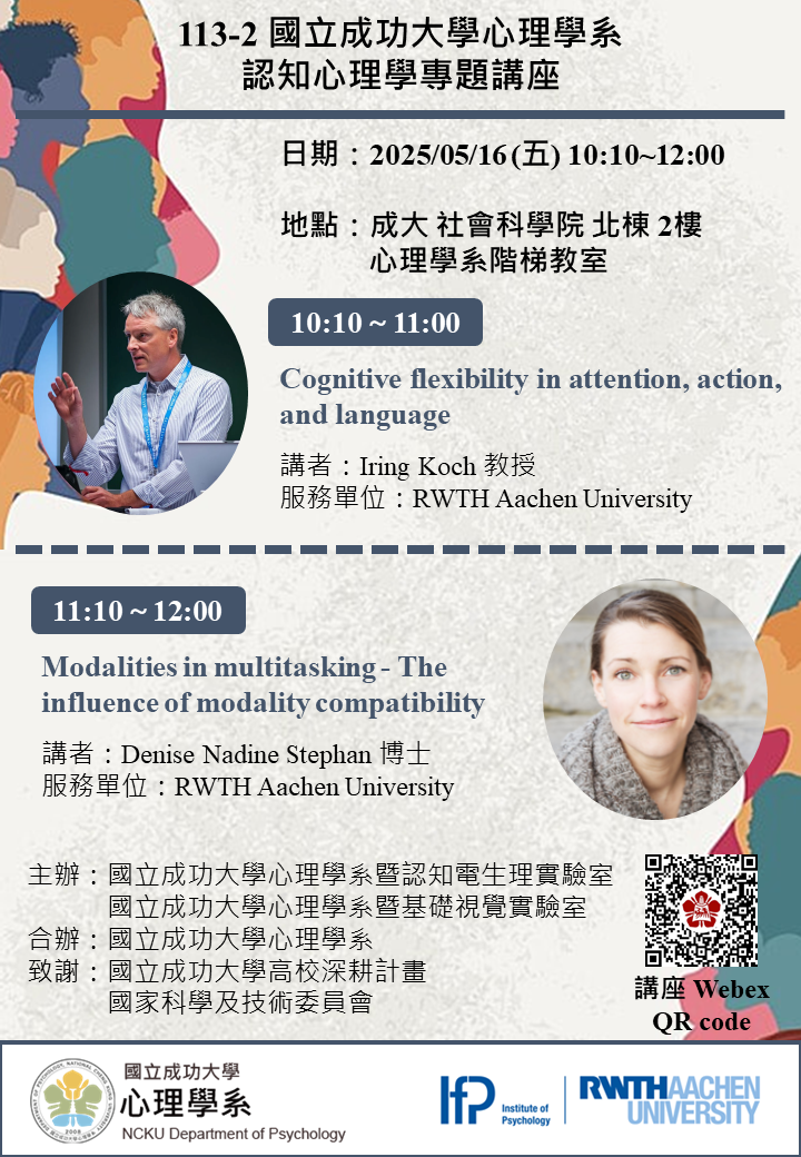 【演講公告】5/16 (五) 上午場 邀請德國亞琛工業大學心理學系學者蒞臨演講,歡迎踴躍出席