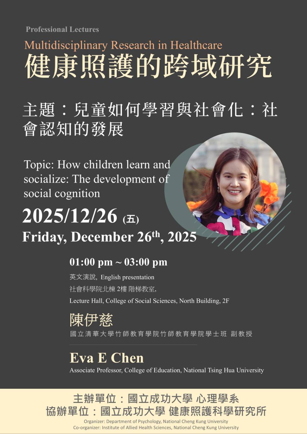 Venue: Lecture Hall, Department of Psychology, 2F, North Building, College of Social Sciences, National Cheng Kung University (NCKU)